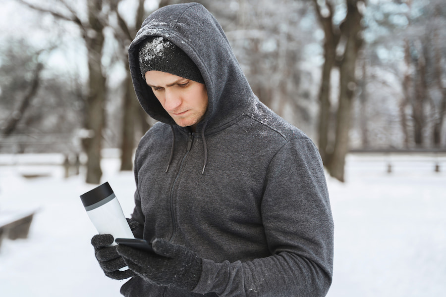Regardless of whether or not you’re working out with someone else in person, it’s a good idea to let someone know where you are or where you’re going when you’re working out in the cold. Keep a fully charged cell phone on you so that you can be contacted or contact others in the case that weather suddenly gets severe, or slips happen.